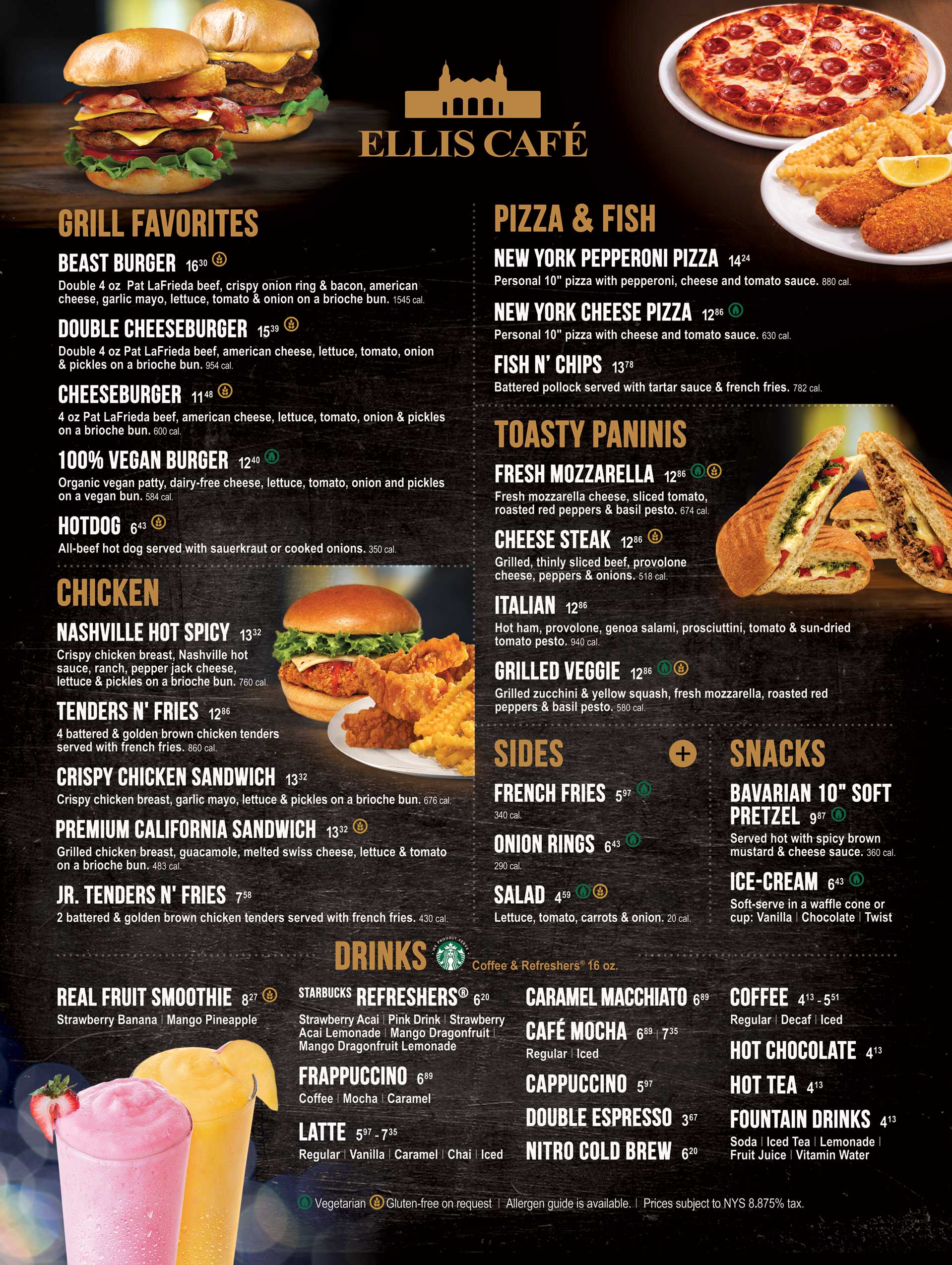 Allergen information is available below. All prices are subject to NYS 8.875% tax.